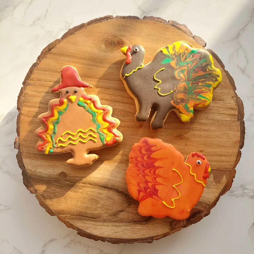 🦃 Celebrate the holiday with our hand-decorated Thanksgiving Turkey Cookies!