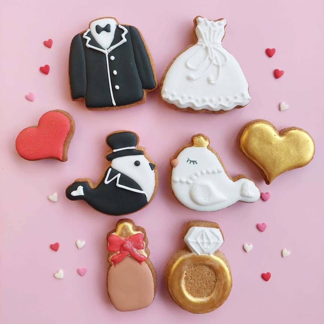 💑 Celebrate love with our charming Wedding Mini Cookies, featuring the bride and groom as adorable little love birds!